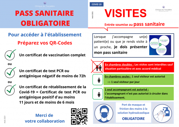 Conformément à la loi du 5 août 2021 relative à la gestion de la crise sanitaire, l’entrée au sein de notre clinique est soumise au pass sanitaire.